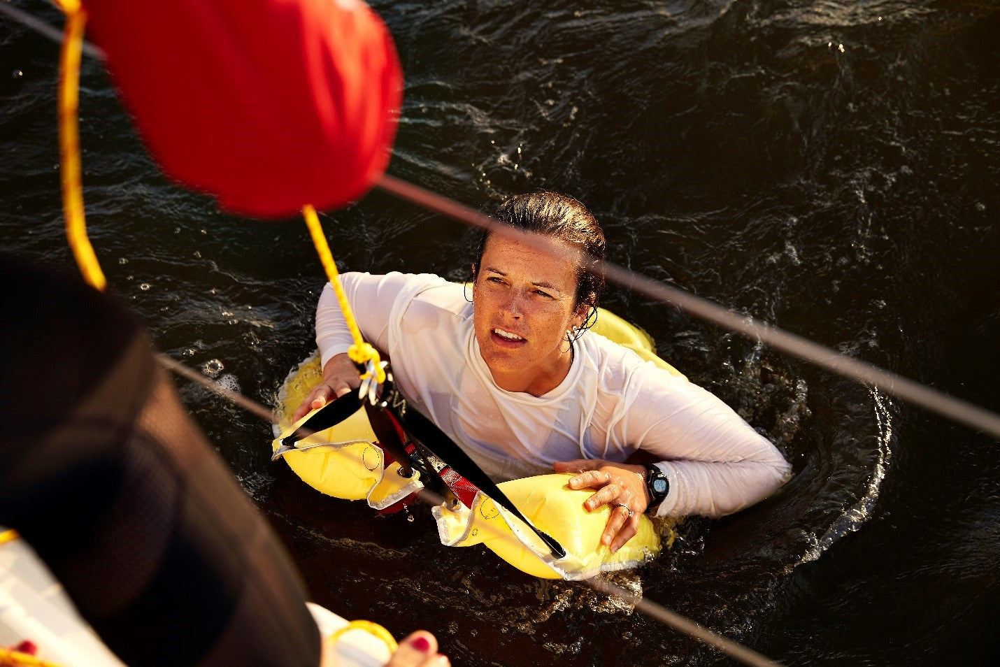 The completely self-contained system is designed to be rail-mounted to the stern of a boat providing instant deployment into the water near the victim. The Underarm Flotation Device will keep the victim afloat, while the pylon fitted with reflective tape and an LED light provides excellent visibility. The weighted sea anchor will ensure that the victim remains in the same location. With the durable lifting straps, getting a victim back on board becomes easy. When brought along side, the victim can be lifted vertically by attaching a halyard or other device to the durable lifting straps and eye rings on the Underarm Flotation Device.